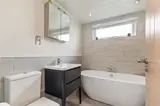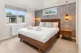 The cosy master bedroom boasts a SUPER king size bed with feature pendant lighting as well as an en suite with large walk in shower. There's also an additional double bedroom with its own feature pendant lighting, and a shared family bathroom with a well sized tub.