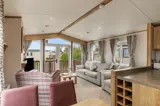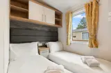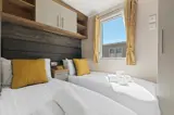 The 2 bedroom Skomer 2 is 12ft wide with one double bedroom and one twin bedroom, sleeping a maximum of 4 people (bedding included). Inside you'll find a well equipped kitchen with full size cooker, fridge with freezer compartment and microwave, dining area, living area with digital TV, alongside a family shower room with WC and wash basin. Outside on your private sun deck, you'll find your hot tub as well as an outdoor table with comfy seating.